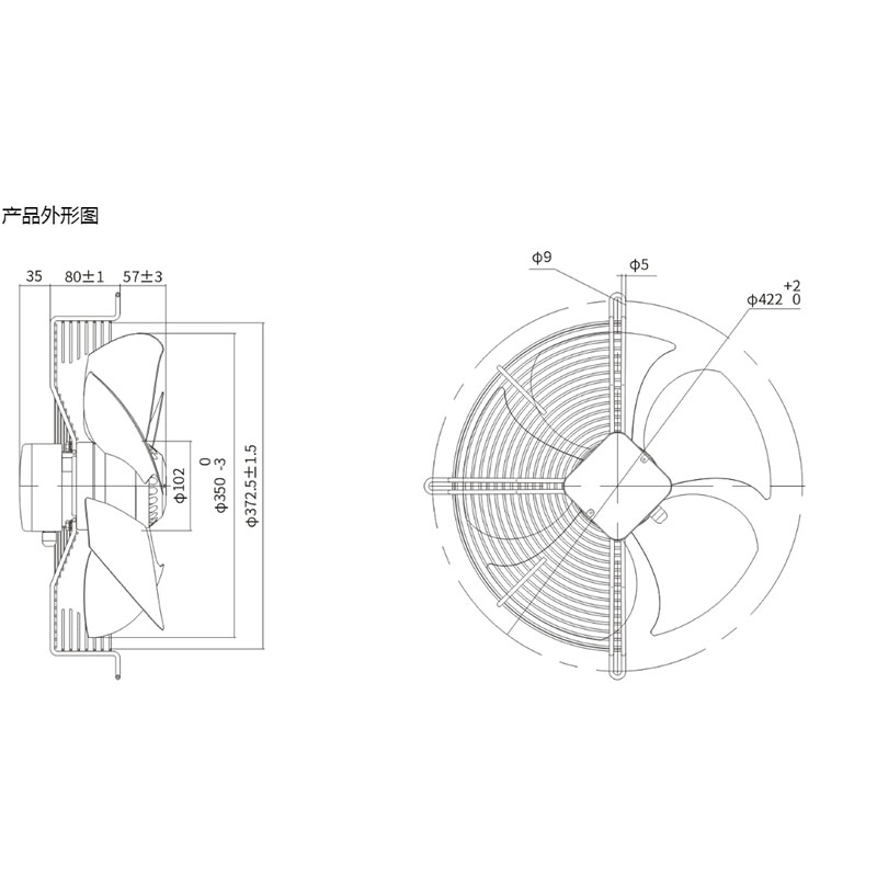 • YWF.A4S-350S-7DIA01冷庫專用排風外轉子低噪聲網罩軸