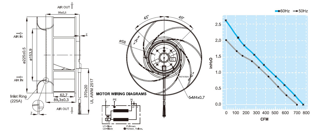 UF225(99)APA全新原裝臺灣正品福佑小型離心風機排煙機蝸殼注塑機變頻器散熱