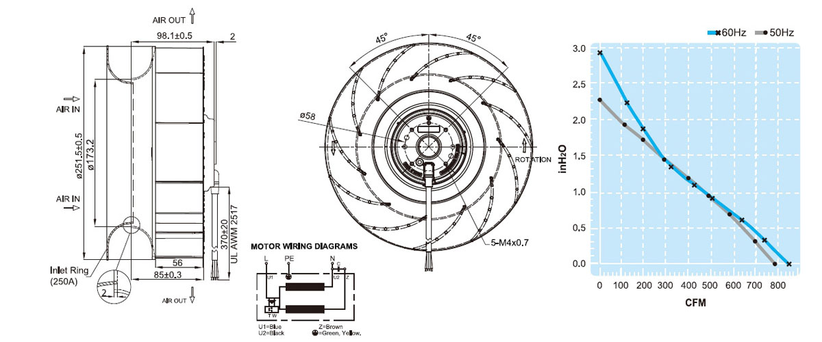 UF250APA11H1C2A離心風(fēng)扇臺灣福佑伺服電機散熱風(fēng)扇充電樁外轉(zhuǎn)子