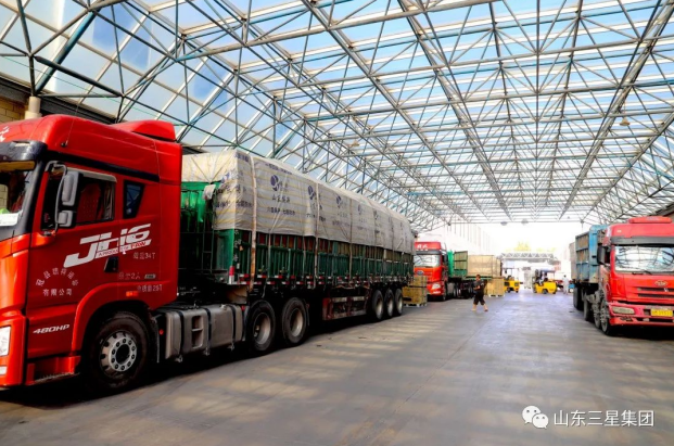 ▲來自各地的運輸車輛正等待裝車,長壽花全系列產(chǎn)品由此馳往全國市場。