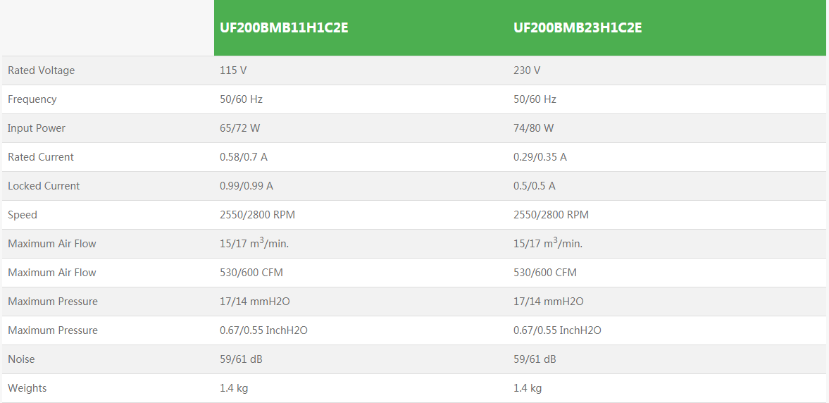全新原裝臺灣UF200BMB11H1C2E外轉子大風量低噪聲排煙軸流風機